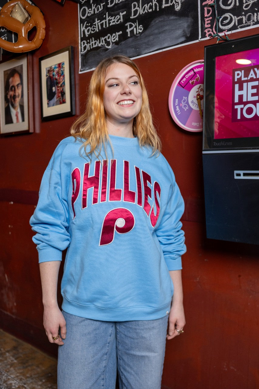 Officially licensed Philadelphia Phillies Carolina Extra Innings Oversized Crew - women's. Throwback sport fleece design with an oversize "boyfriend" fit.